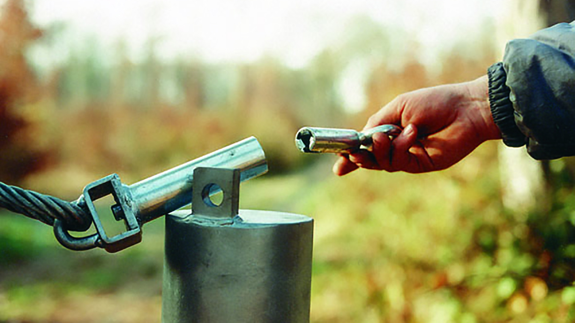 Stærk kabel pullert for adgangsregulering i f.eks. skov og andre naturområder.